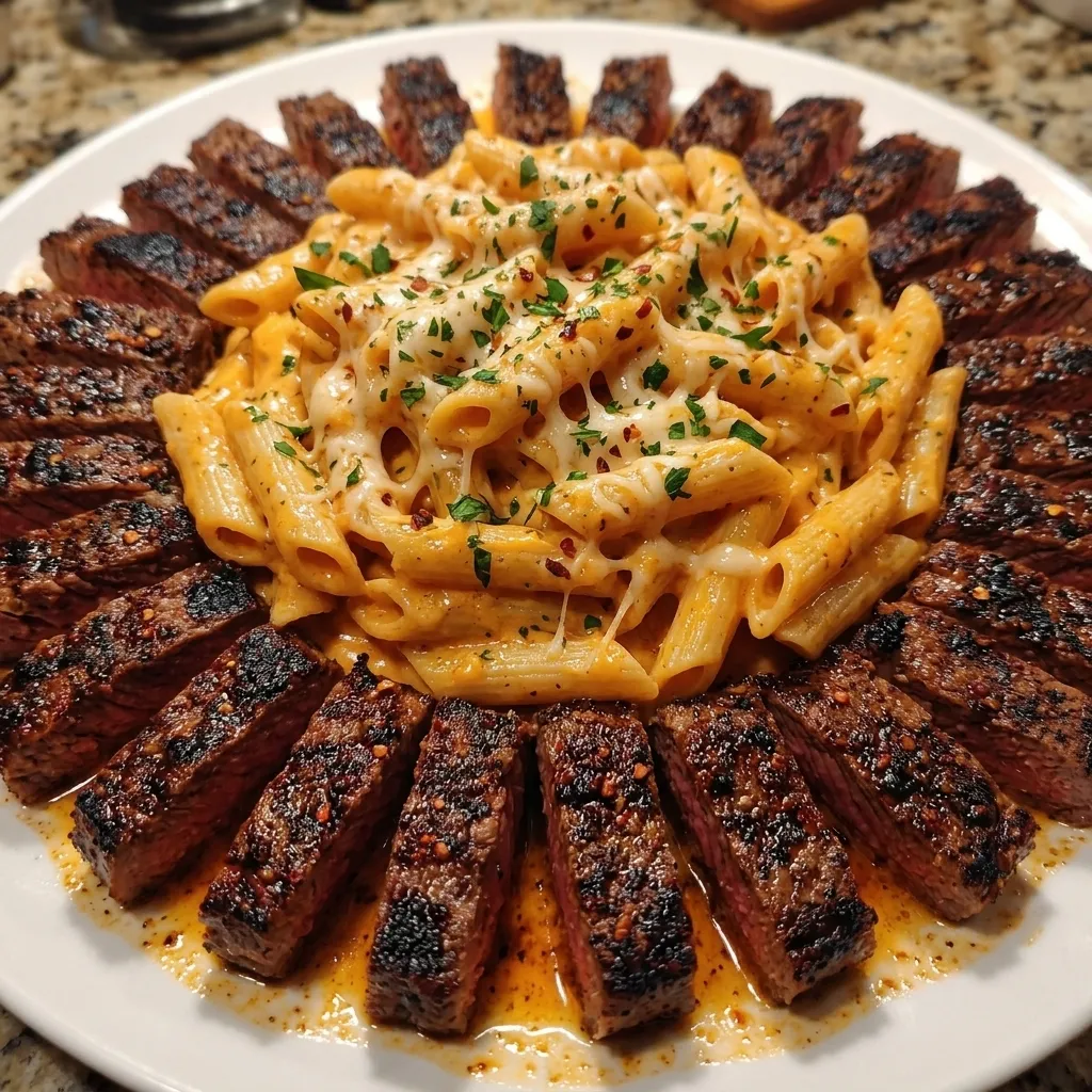 Before we gather pots and pans, know this: the smell will fill the house, the penne will cradle each bit of sauce, and the steak strips will bring a little bite and spice. The texture should be silky from the cream, stretchy from the mozzarella, and slightly grainy from the Parmesan. As you stir, the sauce should cling to the spoon the way a familiar hand clings to another at dusk.