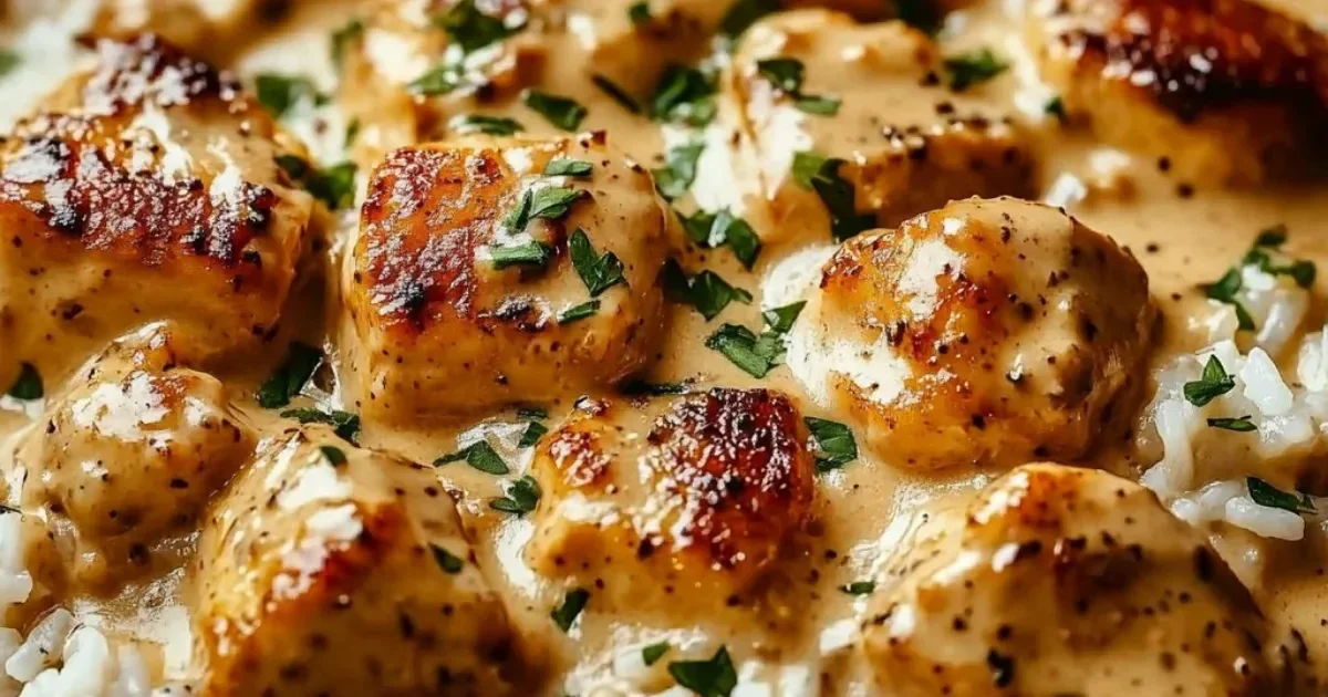 A comforting Southern dish that combines seared chicken, creamy sauce, and fluffy rice, perfect for family gatherings.
