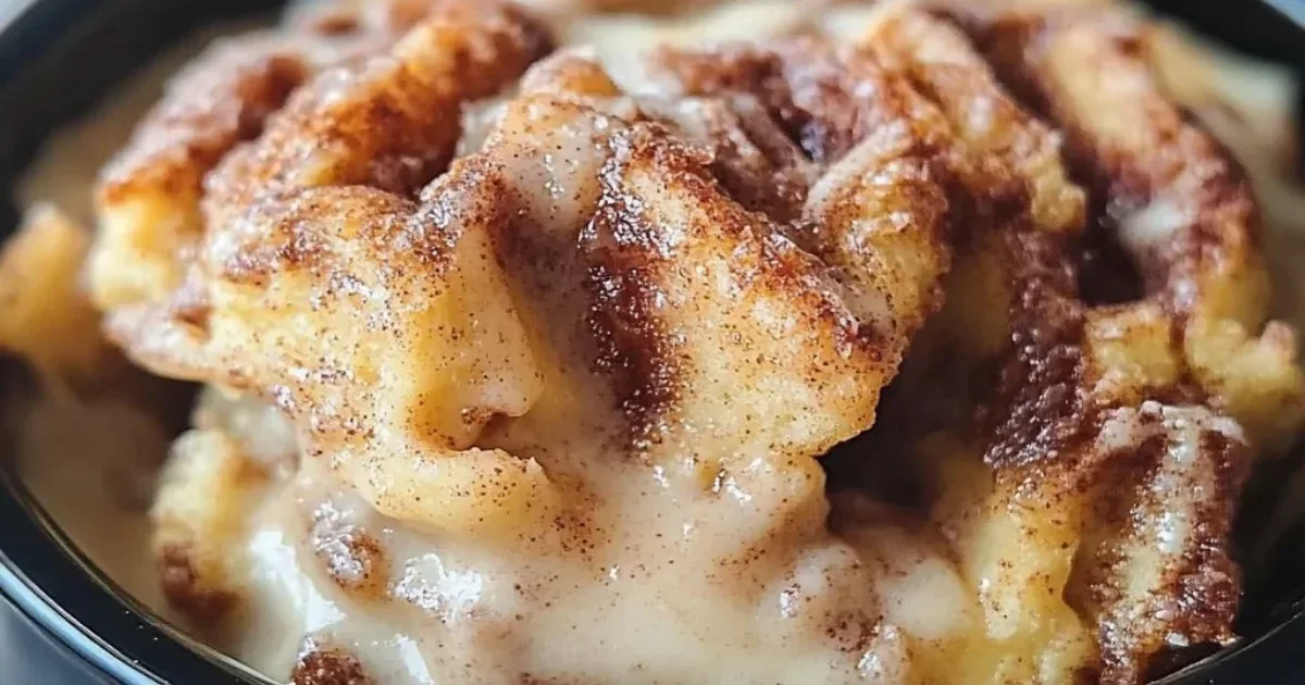 A comforting and sweet casserole made with cinnamon rolls, eggs, and milk, slow-cooked for a tender custardy texture.