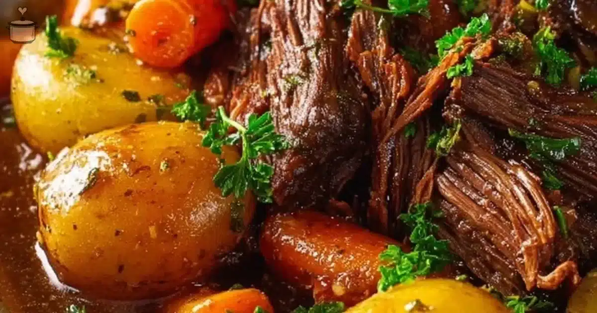 A comforting, slow-cooked pot roast with tender beef, savory vegetables, and rich flavors that bring families together.