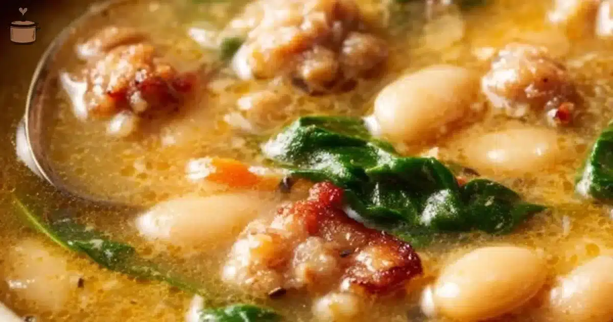 A comforting slow-cooked soup made with Italian sausage, cannellini beans, and fresh spinach, perfect for family dinners.