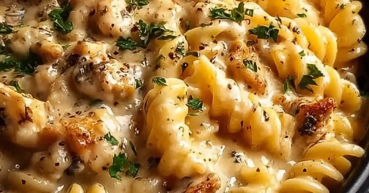 A comforting and creamy chicken pasta dish with garlic and Parmesan, perfect for cozy weeknight dinners.