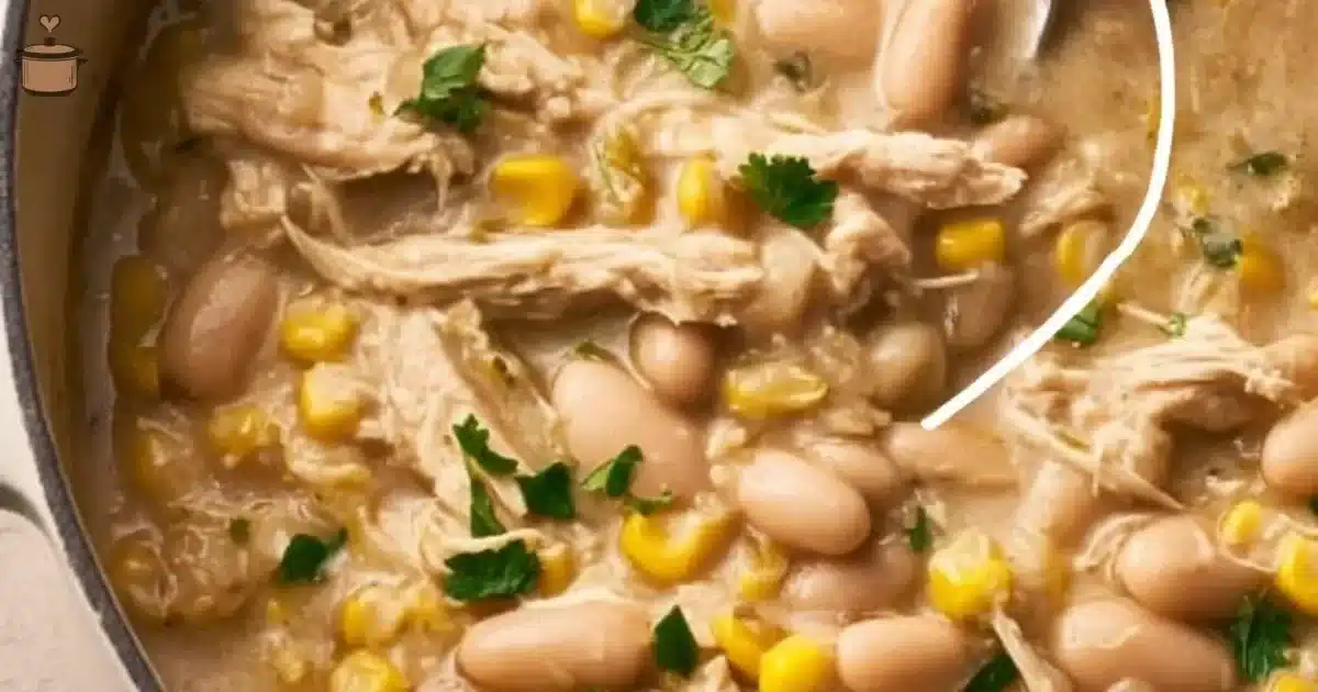 A cozy and comforting dish that simmers in the slow cooker, filled with chicken, white beans, and spices.